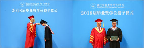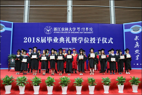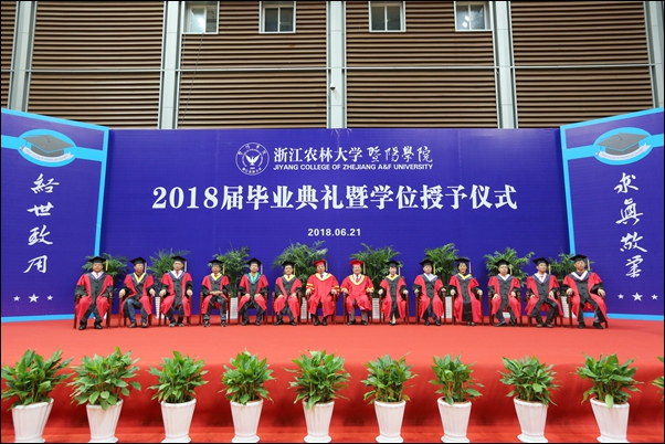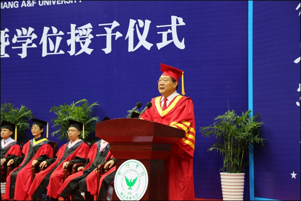 浙江农林大学副校长、学院董事金佩华,院领导石道金、潘国忠、李文莉、张晓优、吴正金、金松恒、高国俊、李叔君以及全体学士学位评定委员会委员出席典礼仪式。典礼仪式由党委副书记高国俊主持。