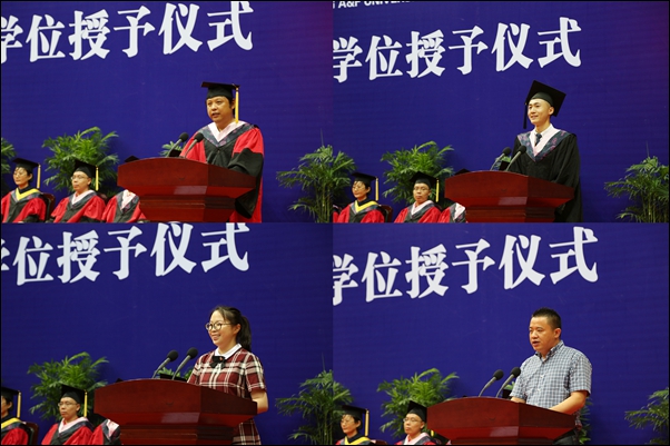 毕业典礼上,教师代表汪洋教授深情寄语毕业生常回母校看看;毕业生代表周东敏回忆四年过往,满怀感恩之心;在校生代表顾滢杰为学长学姐们送上真挚的祝愿;毕业生家长代表励海明感谢学校对孩子的倾情培养,感慨“当初选择77779193永利官网是对的!”