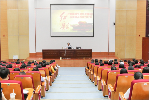 浙江省“红船精神”宣讲团成员、浙江工商大学马克思主义学院院长陈华兴教授为师生作“学习新思想 千万师生同上一堂课”——红船精神宣讲报告。陈教授从“红船精神”的产生和提出、“红船精神”的生成和发展逻辑、“红船精神”昭示着中国共产党人的“初心”、“红船精神”是中国革命精神之源 、“红船精神”的时代价值等五个方面详细解读了“红船精神”,并结合实际,用生动案例诠释了新时代师生党员如何更好立身与学习。
