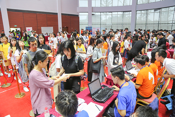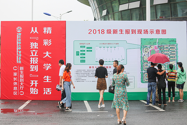 迎新的每一处细节都承载着学院对新生无微不至的关怀。和往年一样,开设绿色通道、特色班咨询报名点、医疗服务点、家长休息区。2018 级新生则在指示牌和志愿者的引导下,暂别父母、家人的关怀和帮助,独自完成缴费、注册等一系列报到手续。为帮助新生亲友实地深入地了解学生在校期间的成长环境、培养模式、发展指导等基本情况,学院广大教职员工和学生志愿者与新生亲友进行深入交流。2018级新生也对暨阳新生活充满展望。