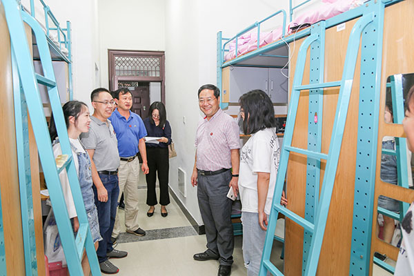 当天,校党委副书记史永安来院视察指导学院迎新整体情况和新学期开学整体工作,亲切看望2018级新生。在院长石道金陪同下,校领导前往迎新工作现场,了解学院新生报到情况,看望迎新工作人员,并对学院扎实做好迎新工作予以充分肯定,要求学院继续做好新生入学后续各项工作,服务学生成长成才。