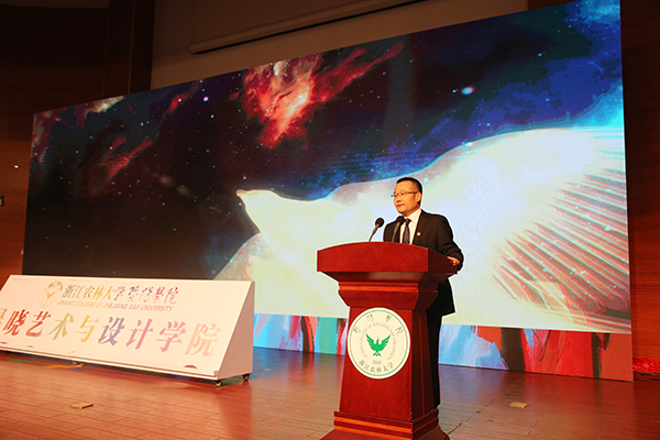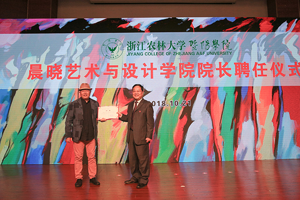 本网讯 10月21日上午,晨晓艺术与设计学院成立仪式暨庆祝浙江农林大学建校60周年“美的世界·穿越时空师生艺术作品展开幕式在明珠报告厅隆重举行。
