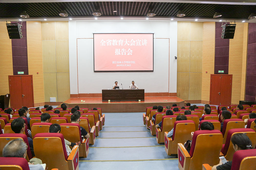 5月30日,永利官网举行全省教育大会宣讲报告会,浙江省教育厅统战处处长,诸暨市委常委、副市长陈仁坚作宣讲报告。学院党政班子成员,全体中层干部,督导委员会主任,各二级学院系主任、专业负责人,党支部书记,民主党派负责人参加会议。学院党委书记潘国忠主持会议。