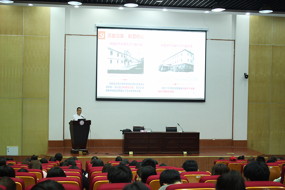 6月11日晚上,学院党委书记潘国忠为全体学生党员上《学习新党章,永远跟党走》专题党课。“党章就是党的根本大法,是全党必须遵循的总规矩。”党课从“历史沿革,彰显初心”“崭新时代,再修党章”“时代新章,引领青年”等三个维度展开。