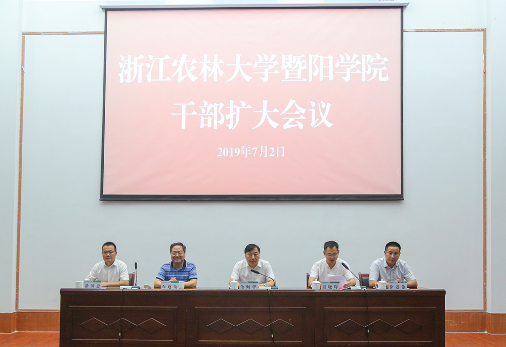 本网讯 7月2日,学院召开干部扩大会议,宣布关于学院主要领导调整的决定。浙江农林大学党委副书记金佩华出席会议并讲话,校党委委员、组织部部长童晓晖主持会议并宣读了董事会关于学院主要领导任免的文件。