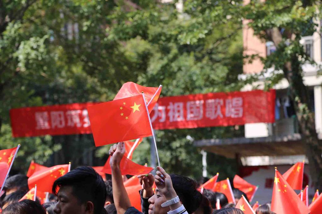 9月29日中午,学院团委组织开展“筑梦暨阳,青春为祖国歌唱”快闪活动。“我和我的祖国,一刻也不能分割,无论我走到哪里,都流出一首赞歌……”学生宿舍区小广场上传出一阵悠扬的歌声,一场快闪活动正在火热进行中。暨阳学子紧紧围绕着小广场,手持国旗,一面面鲜艳的五星红旗迎风飘扬,高高举起,伴随着歌声一起挥舞,形成一片红色的海洋,每个人都深情饱满地挥舞着手中的国旗。