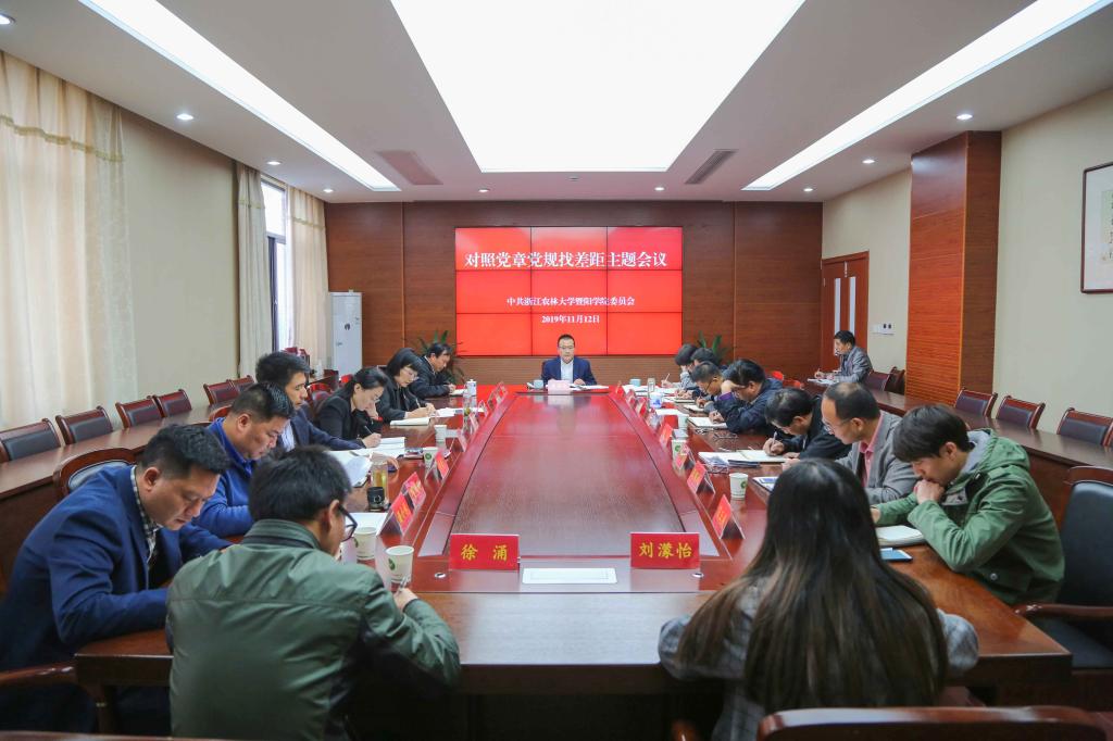 11月12日下午, 学院党委在行政302召开对照党章党规找差距主题会议。学院党政班子成员出席会议。党委书记潘国忠主持会议。
