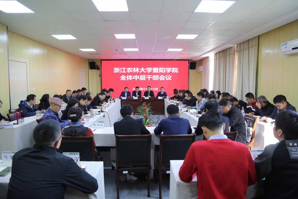 11月15日,学院召开全体中层干部会议,宣布关于学院主要领导调整的决定。浙江农林大学副校长徐爱俊出席会议并讲话,校党委委员、组织部部长童晓晖主持会议并宣读了董事会关于学院主要领导任免的文件。
