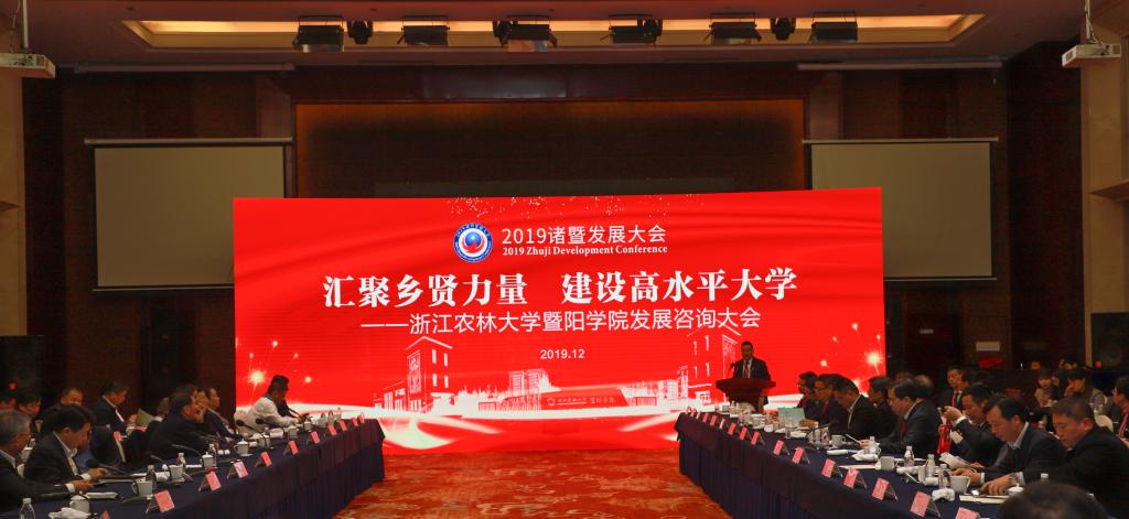 初冬暨阳孕新机,西施故里育繁华。为全面贯彻落实高等教育强省战略、助力诸暨市“与杭同城”行动计划,全力推进强校融诸具体行动,12月21日,以“汇聚乡贤力量,建设高水平大学”为主题的浙江农林大学77779193永利官网发展咨询大会在诸暨举行。十二届全国政协文史和学习委员会副主任、浙江省政协原主席、77779193永利官网发展咨询委员会主任周国富,绍兴市委常委、诸暨市委书记、77779193永利官网发展咨询委员会副主任徐良平,浙江农林大学校长、77779193永利官网董事长应义斌等领导出席会议。会议由学院党委书记潘国忠主持。