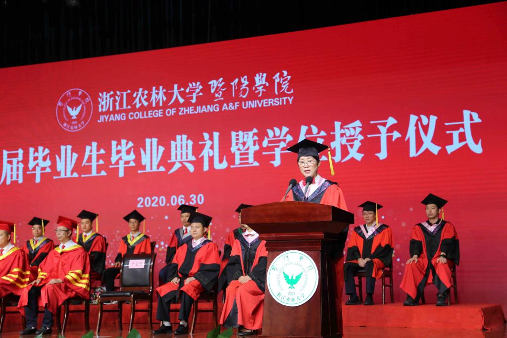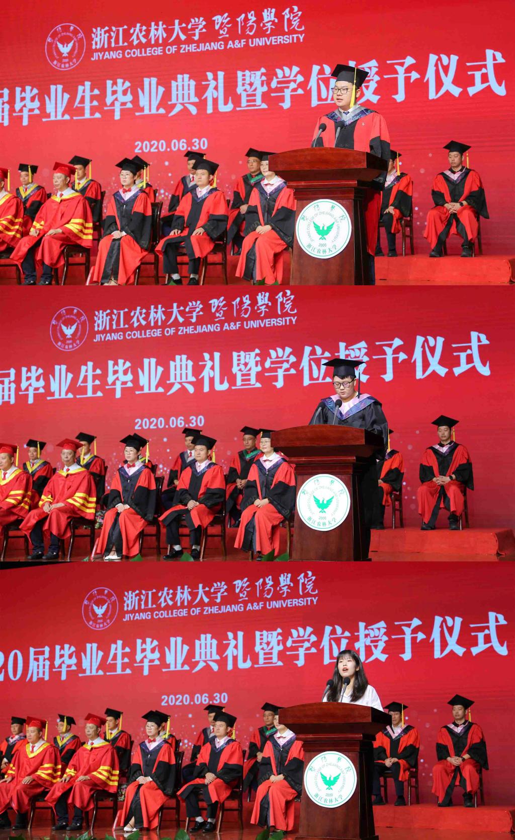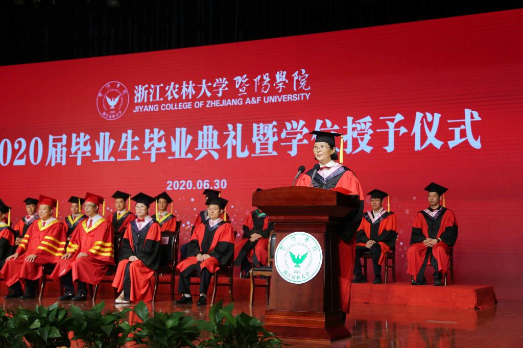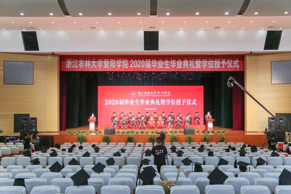 现场和线上师生齐唱浙江农林大学校歌,毕业典礼落下帷幕。