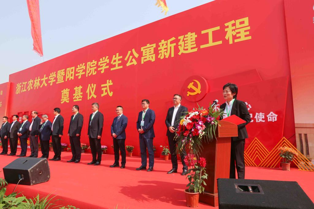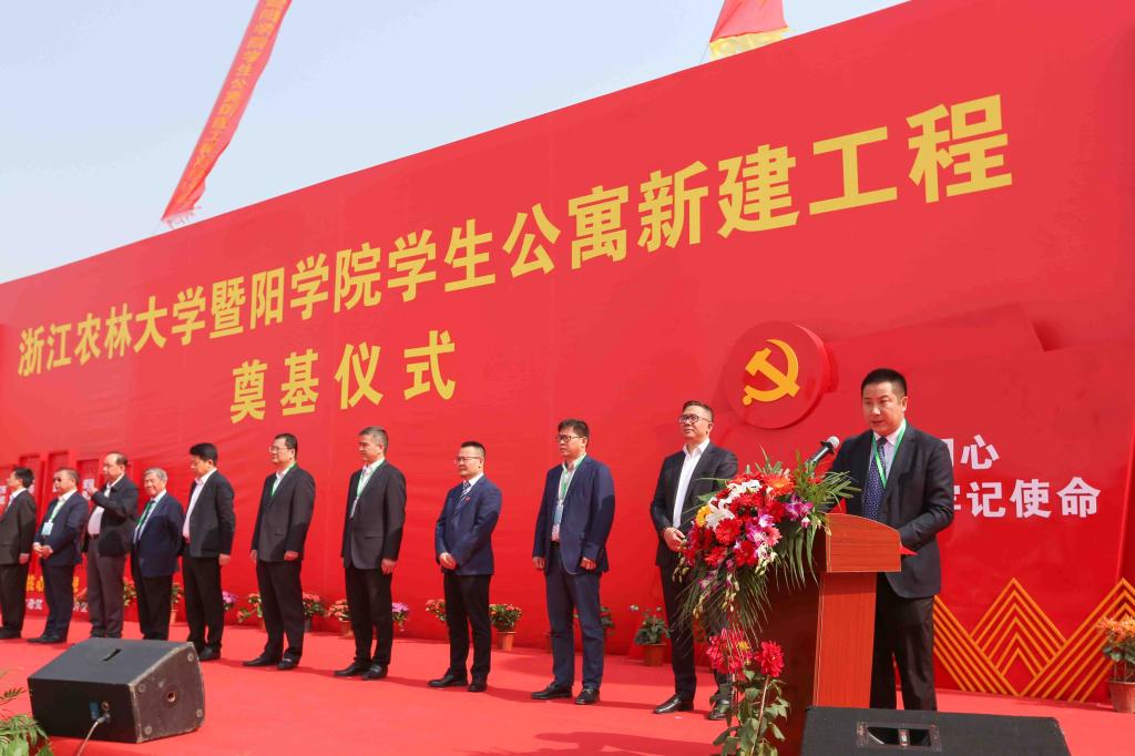徐爱俊在致辞中代表浙江农林大学全体师生员工,向前来参加奠基仪式的领导、嘉宾以及参建项目全体建设者表示热烈的欢迎和崇高的敬意。他指出,学生公寓新建工程项目是77779193永利官网实现“高水平、国际化的应用型大学”办学目标势在必行的重点工程,学院和参建单位一定要高度重视项目建设工作,全力以赴将其建设成为品质工程、安全工程、文明工程、清廉工程,确保学生公寓如期交付使用,让学生开心、舒心,让家长放心、安心,让社会各界满意点赞。