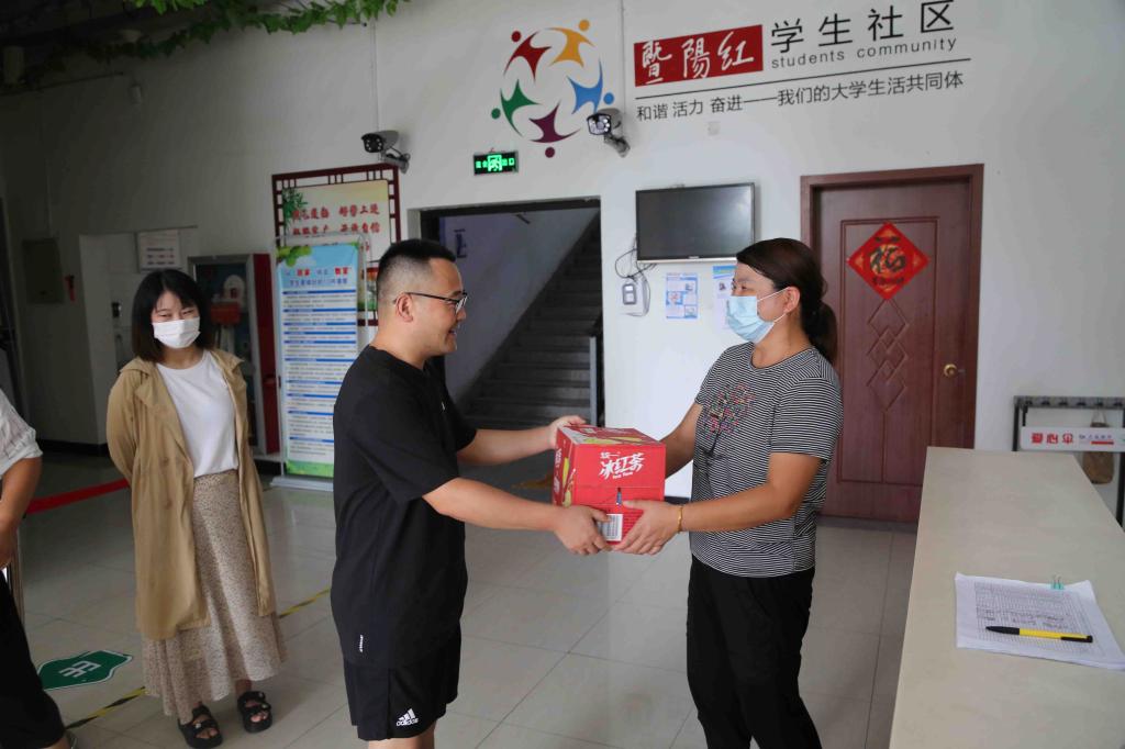 8月10日上午,学院党委书记潘国忠、党委副书记高国俊在炎炎烈日中带队走访慰问了暑假期间坚守工作岗位的教职员工,并为他们送上防暑降温物品。相关职能部门负责人陪同慰问。