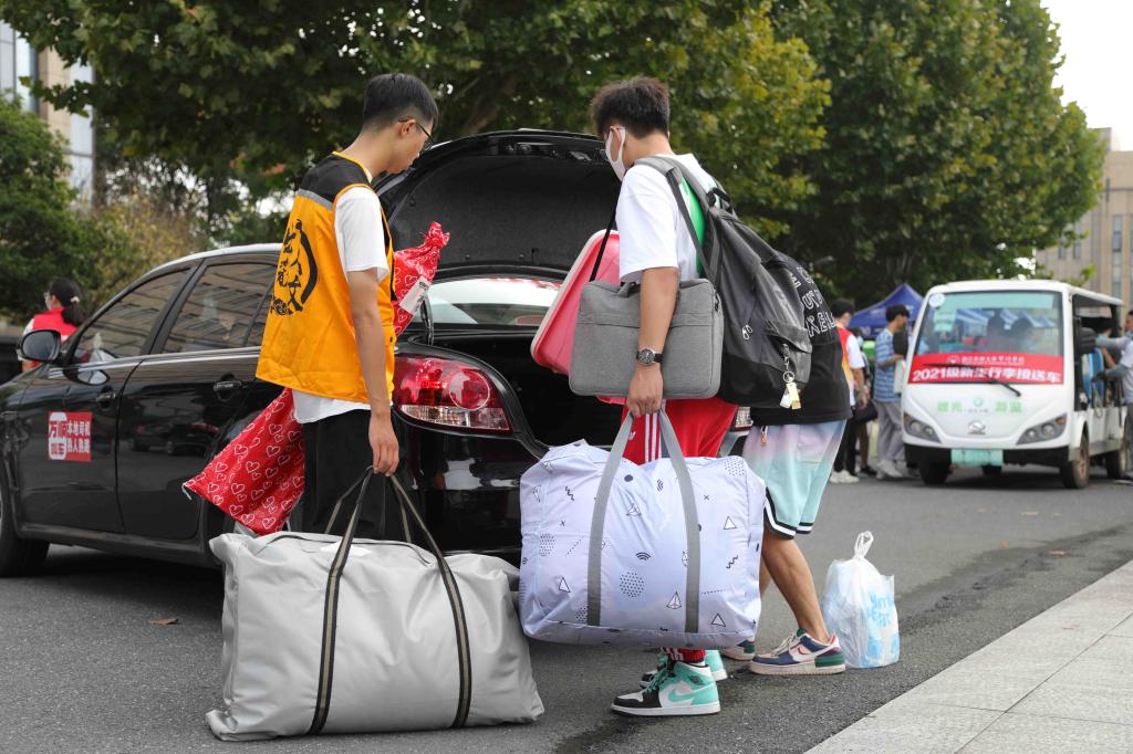晨曦初露,迎新志愿者在高铁站、校门口迎接新同学,为新生送上了来自暨阳的第一份温暖。