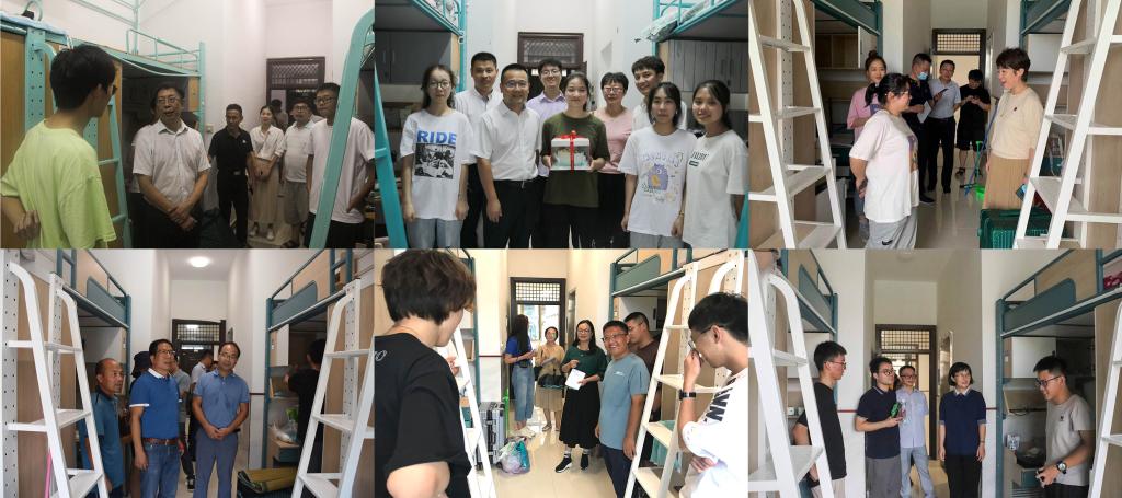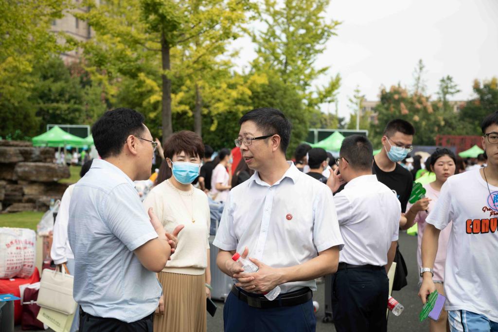 院长徐光辉、党委书记潘国忠一行来到新生报到现场,检查指导迎新工作,慰问工作人员与志愿者,并与新生进行亲切交谈。下午,学院领导陆续前往各二级学院新生寝室走访看望2021级新生,认真了解新生的生活情况,关心问候新生报道后的感受,并勉励同学们尽快适应大学生活,珍惜青春时光,做好人生规划,在暨阳开启新的奋斗历程。