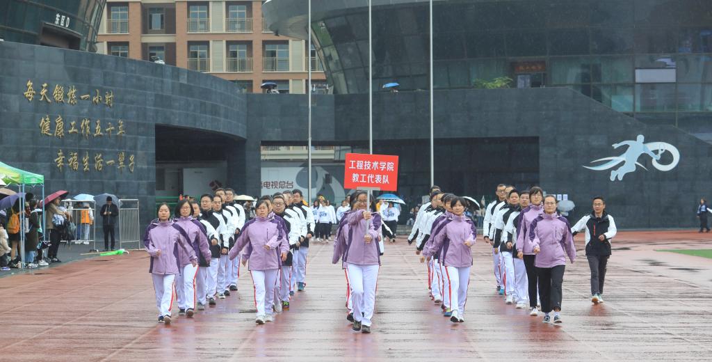 体育强,学校强;校运兴,体育兴。伴随着激昂的《运动员进行曲》,国旗方队、院旗队、会徽队、鲜花队、彩旗队,运动员代表队以及学院教职工代表队依次入场,他们精神抖擞、神采奕奕、迈着矫健的步伐、喊着嘹亮的口号、以热情饱满的姿态迎接师生的检阅。各方阵创意独特、精彩纷呈的多种表演形式博得了现场阵阵掌声。