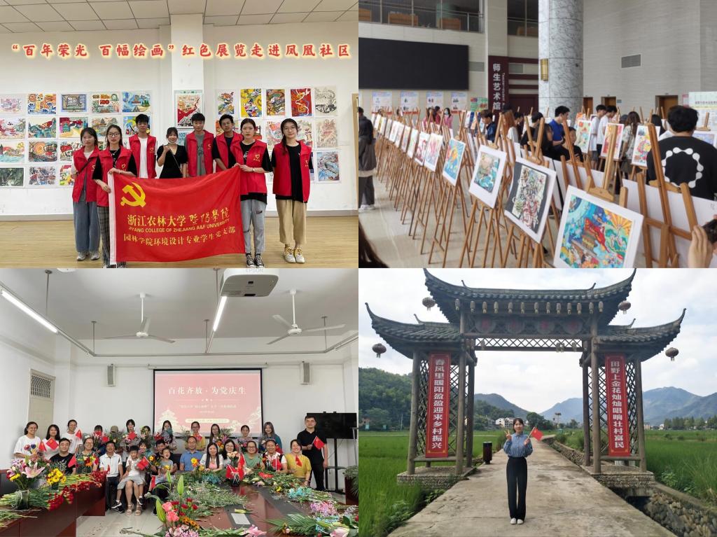 百年波澜壮阔,百年壮丽辉煌。为庆祝中国共产党成立100周年,厚植青年初心使命,点燃学子家国情怀,引导暨阳师生拥党爱党,体会中国共产党取得如今辉煌成就的不易,园林学党总支开展“建党百年 初心如磐”五个一百系列活动之“百颗种子认养”、“百句祝福对党说”、“百年荣光 百幅绘画”主题展、“百花齐放 为党庆生”主题插花、“百旗百村 幸福寻访”活动,让党史学习教育在学院专业特色活动中绽放出绚丽的花朵。“百年荣光 百幅绘画”主题展被浙江新闻转载宣传,并走进诸暨市基层社区。