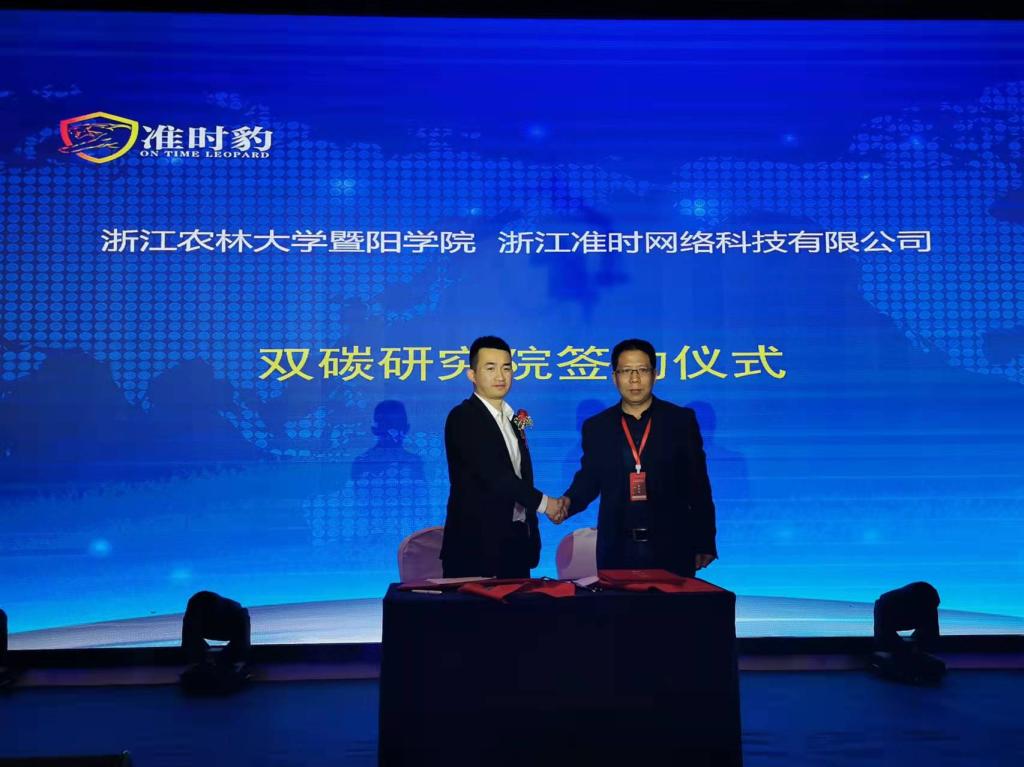金松恒副院长代表学院与浙江准时网络科技有限公司签订联合成立双碳研究院与双碳商学院战略合作协议。