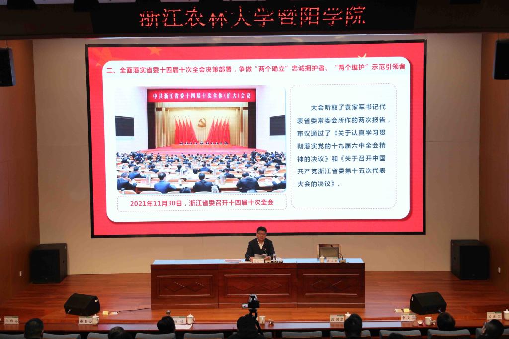 绍兴市委常委、诸暨市委书记沈志江来永利官网宣讲党的十九届六中全会、省委十四届十次全会精神