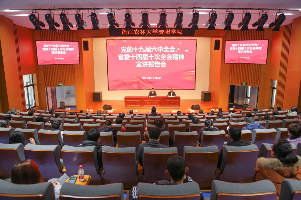 诸暨市委办、市府办、宣传部负责人,学院全体中层干部、党支部书记参加宣讲会。