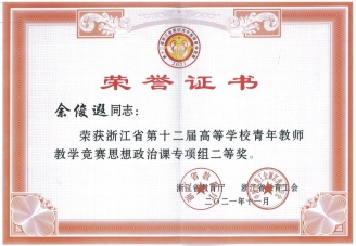 近日,浙江省第十二届高校青年教师教学竞赛决赛圆满落幕,永利官网马克思主义学院余俊遐老师喜获思政组二等奖。