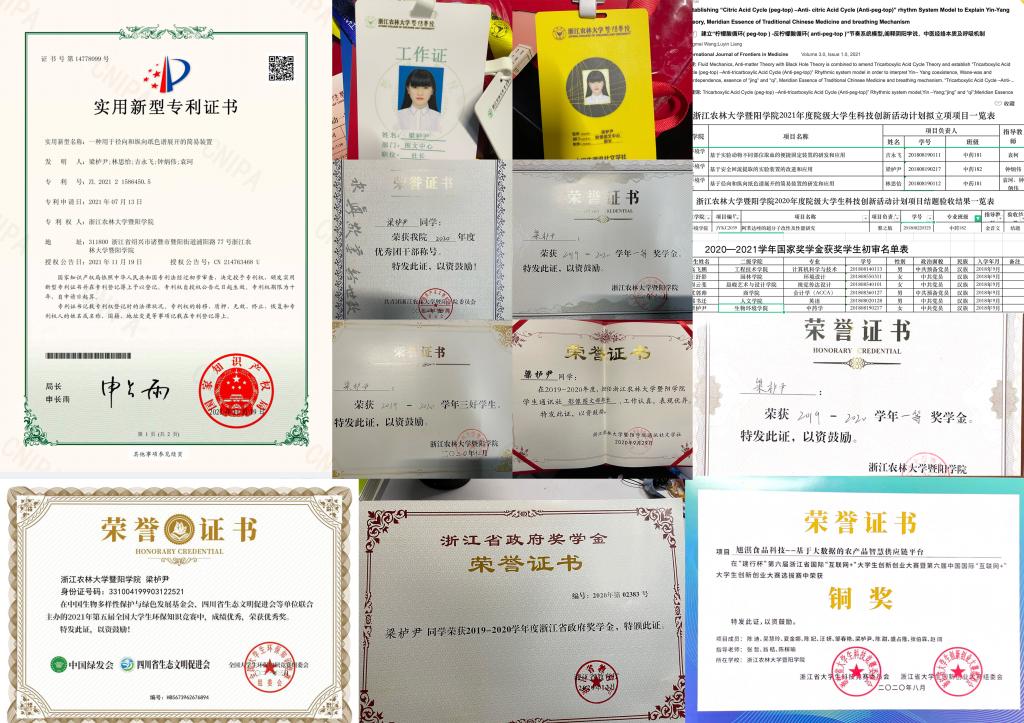 梁栌尹,中共党员,中药学182班,曾任77779193永利官网大学生通讯社图文中心社长。主持、参加省级创新项目1项,校级立项5项、申报国家实用新型专利4项、国家级、省级学科竞赛与创新创业大赛荣誉3项。获国家奖学金、省政府奖学金、一等奖学金、浙江省优秀毕业生、绍兴市优秀毕业生、校级优秀毕业生、三好学生、优秀团员、优秀团干部、优秀干事等荣誉。
