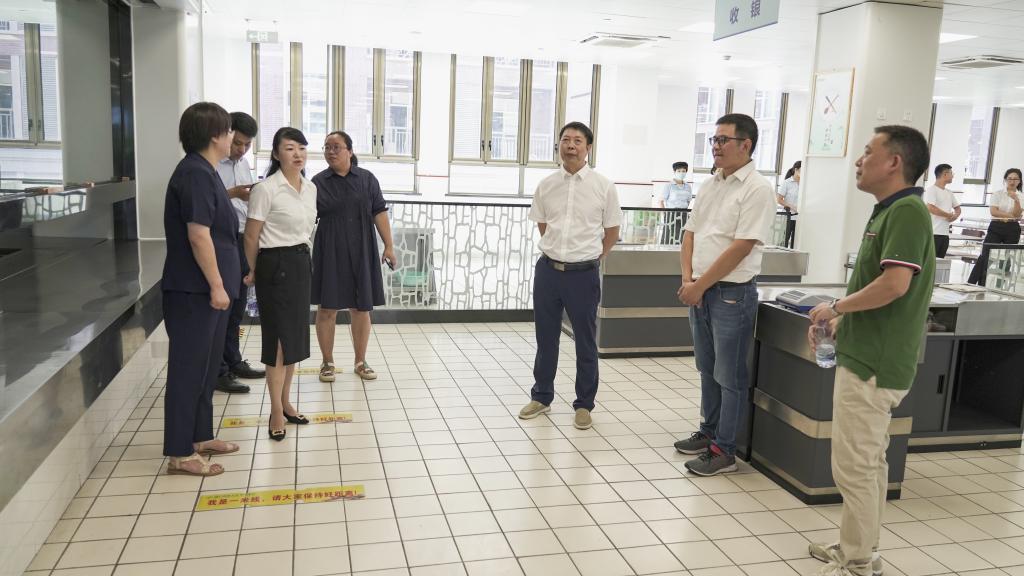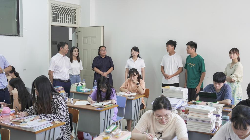 院领导一行先后走访慰问招生办公室、学校大门保卫室、考研教室、高配电房、体育中心、学生社区、新建食堂及卫生所,听取了相关负责人的工作汇报,详细了解了招生录取工作进展、校园疫情防控举措落实、校园安全保卫、暑期留校学生管理、考研学生学习、暑期食堂就餐供应等情况,并提出具体要求和意见建议。院领导对留校学生利用暑期复习备考表示充分肯定,叮嘱同学们要劳逸结合、积极备考;对暑期坚持在一线岗位的教职员工表示感谢,希望大家注意防暑降温和身体健康,在做好工作的同时统筹合理安排轮休。