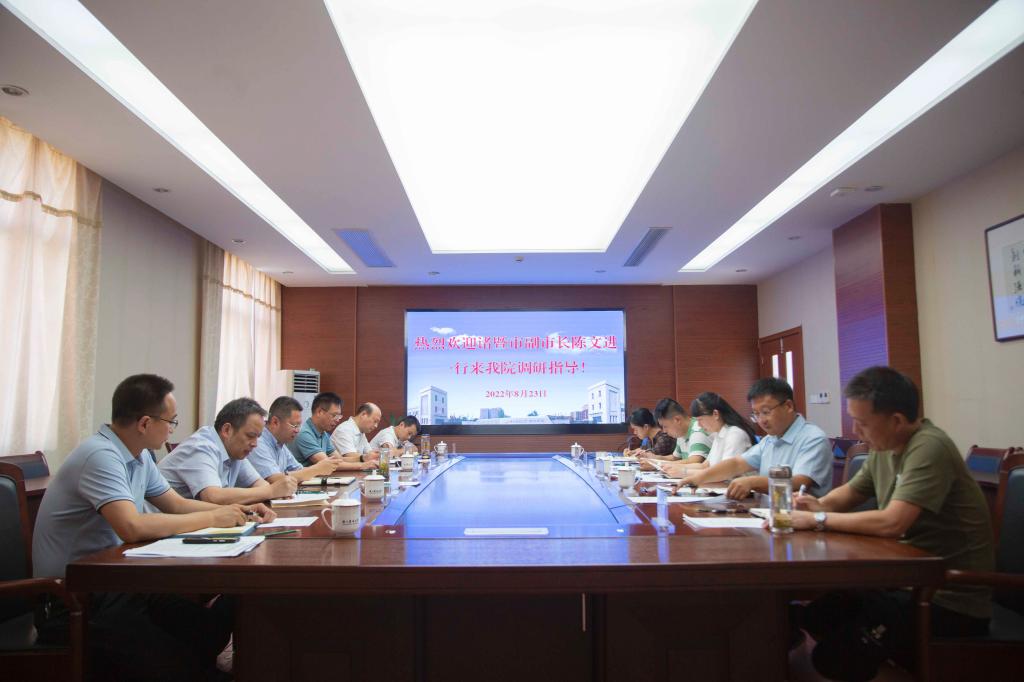 8月23日下午,诸暨市副市长陈文进一行来永利官网调研指导。诸暨市教体局局长陈初明、副局长杨均力,人社局副局长应仲九陪同调研指导。学院党委书记洪昀、党委副书记高国俊参加座谈会。
