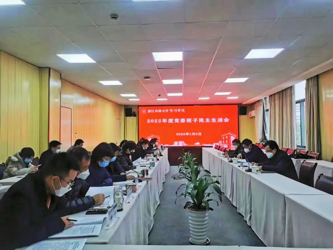 根据学校党委统一部署,1月5日,学院党委召开2022年度民主生活会,浙江农林大学副校长徐爱俊,校党委委员、组织部部长缪鲁加,校纪检监察室、巡察办公室副主任史冬辉等到会指导。学院党委班子全体成员参加会议,非中共党员院领导列席会议。学院党委书记洪昀主持会议并代表班子作表态发言。