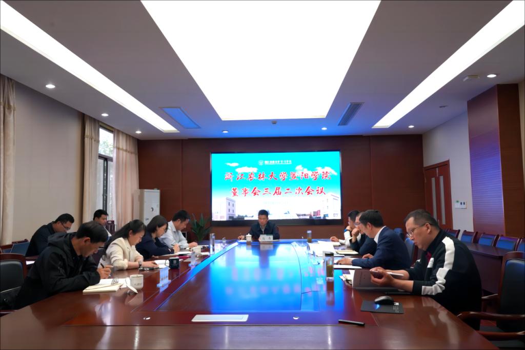 5月11日,学院召开董事会三届二次会议。浙江农林大学校长、77779193永利官网董事会董事长沈希主持会议并讲话。诸暨市人民政府副市长、77779193永利官网董事会副董事长陈文进,浙江农林大学副校长徐爱俊,学院第三届董事会成员参加会议。会议在暨阳学院举行。