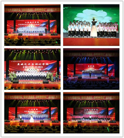 活动第二篇章,开展了以“赓续红色血脉,唱响青春赞歌”为主题的红歌合唱比赛。此次比赛,共有来自各个二级学院的6支代表队参赛,各学院将朗诵、舞台剧、舞蹈等多种表演元素融入红歌演唱,歌曲或激情澎湃,或婉转悦耳,表达了青年师生对党和祖国的热爱,展示了青年师生不忘初心跟党走、勇做新时代追梦人的昂扬斗志。学院艺术团和二级学院代表也组成特别队伍进行合唱表演,齐唱团歌。