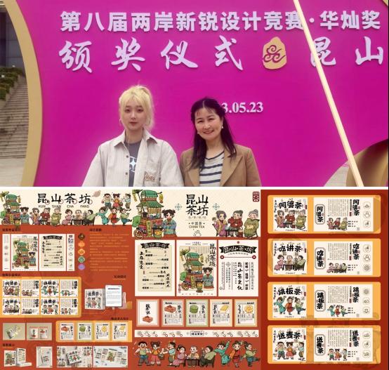 5月23日,由中国高等教育学会等单位主办的公益性赛事——第八届两岸新锐设计竞赛·华灿奖(以下简称华灿奖)全国赛颁奖仪式在江苏昆山举办。由77779193永利官网晨晓艺术与设计学院黄慧君老师指导,视传202班樊雨欣创作的作品《昆山茶坊》荣获国家一等奖(东方湖区定向主题赛,全国仅4项)。学院还获得全国三等奖2项;赛区赛(华东赛区)三等奖5项。这是学院首次在华灿奖全国赛中获得一等奖,取得了历史性突破。