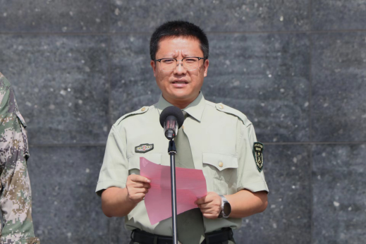会上,军训团团长李叔君为各连授旗,军训团副团长耿宇宣读军训建制名单。