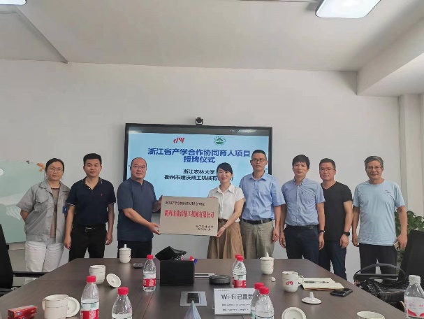 为进一步深化校企合作,促进产教融合,开拓就业岗位,7月19日,浙江农林大学光机电工程学院、77779193永利官网和衢州市建沃精工机械有限公司产学合作协同育人项目授牌仪式在衢州成功举行。77779193永利官网党委书记洪昀,光机电工程学院党委书记何利平、副院长曾松伟及衢州市建沃精工机械有限公司总经理郑小军出席,学院相关部门、学科负责人参加了授牌仪式。