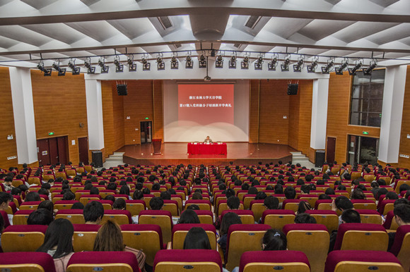 开学典礼上,蔡永华宣读了本期党校班组长名单,人文系英语121班顾倩如同学作为学员代表发言。