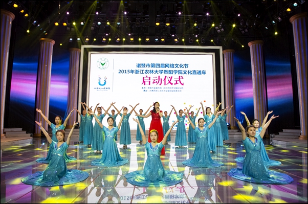 4月24日下午,2015年学院“文化直通车”首站开进诸暨市电视台演播大厅,也标志着诸暨市第四届网络文化节启动。诸暨市委常委、宣传部部长杨元清,副市长俞越出席了活动,并与学院相关职能部门负责人、诸暨市相关局办负责人,以及诸暨市民代表、学院200余名师生共同观看了演出。