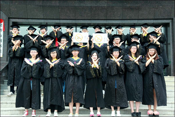 本网讯 日前,永利官网工程技术系应届毕业生拍的一张集体照在新华网、人民网、浙江新闻客户端头条、中国日报网、《天天商报》等国内主流媒体上被广泛宣传报道,得到主流媒体记者们的普遍好评。原来,永利官网工程技术系的毕业生们利用拍毕业照的机会,举出禁止吸烟的牌子、打出禁止吸烟的手势,来提醒人们吸烟有害健康,倡议大家禁止吸烟。