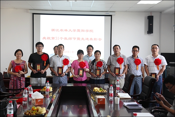 副院长张晓优宣读了从事教育工作满三十周年的教职工、学院2013-2015学年“我心目中的好老师”文件。与会领导为获奖教师颁发奖牌和证书。