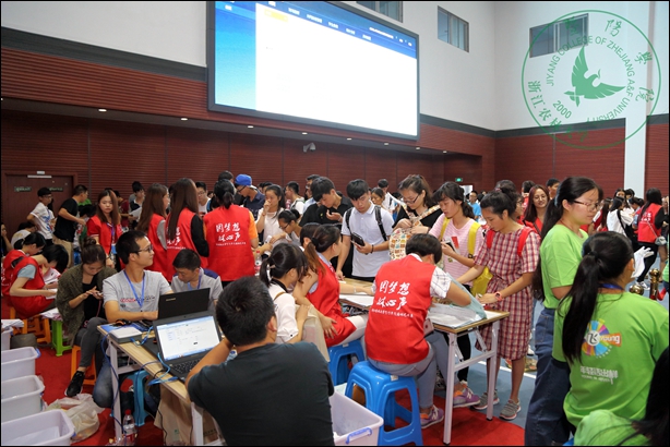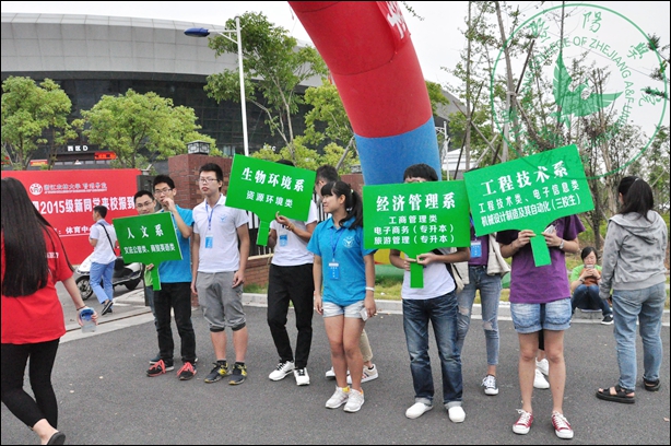 “请您到家长休息区等候,我们会全程引导同学办理好入学手续”、“把行李给我吧,我帮你拿”、“同学,你的寝室是这幢楼……”在2015年迎新工作中,志愿者们无疑是一道靓丽的风景线。他们有统一的着装,又有不一样的辛苦,却收获了同样的快乐。在诸暨客运中心、火车站,家长休息区、新生报到大厅,校园各路口、各系报到点,他们热情似火,青春洋溢,幽默体贴,他们的身影无处不在,用真诚的服务、朴实的行动欢迎学弟、学妹们来校学习。