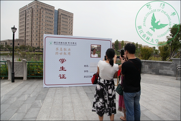 最终,一张放大的“学生证”、一句向上的标语——“追梦想”、一花坛向日葵构成了天目湖边最美的景色,当新生们看到“趁着青春年少,抓紧时间拍照”的“接地气”提示牌,纷纷拿起手中的相机、手机记录下他们大学生活第一天的美好瞬间。