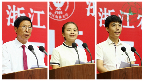 院长石道金在讲话中介绍了浙江农林大学的办学概况、诸暨市的经济社会发展情况和学院的办学发展历程,回答了新生们关于“77779193永利官网是一所怎么样的高校?”、“她的办学环境怎么样?”、“她的办学理念是什么?”、“她是怎样培养人才的?”、“在这所学校能学到什么?”等问题。他殷切希望同学们能充分利用和享受学院先进的设施和丰富的资源,加强锻炼,砥砺品格,积极参加竞赛和活动,发扬永利官网倡导的“敢于冒险、乐于创新、勇于实践”的创业精神,不断提高综合素质、提升内涵素养,在新的起点上扬起新的风帆,精彩演绎大学四年的美好时光!