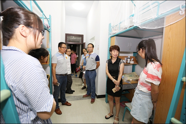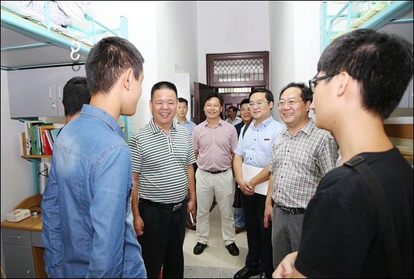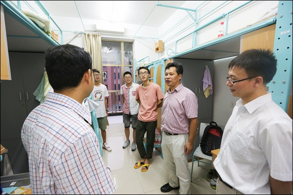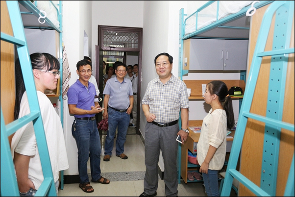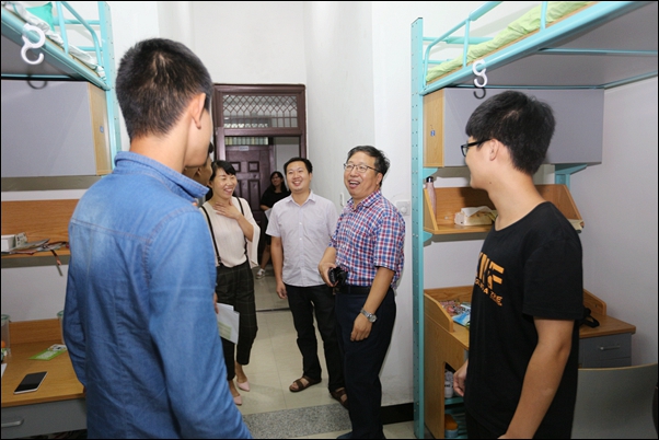 9月11日晚上,院领导石道金、寿韬、修树东、李文莉、张晓优在各系相关负责人的陪同下深入学生寝室,亲切看望2016级新生。