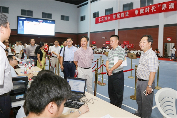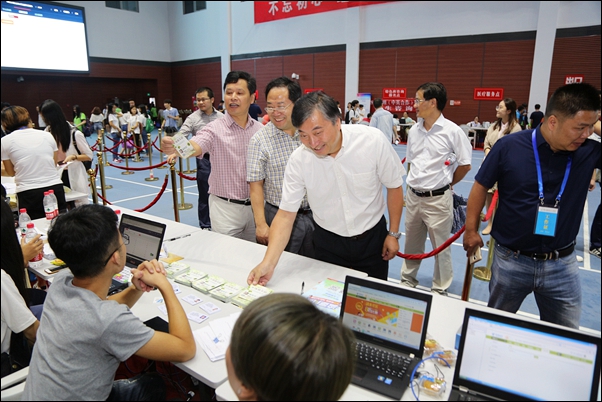在学院体育中心迎新工作现场,金佩华详细了解了学院迎新整体情况和特色班办班情况,充分肯定学院迎新各项工作安排。他强调,迎新是新生认识学校、与学校建立感情的第一步,也是新生接受学校教育的第一步,它关系到新生能否获得好的“第一印象”、关系到新生能否“起好步”,关系到学生、家长和社会对学校的整体评价,要全面细致做好新生入学各项工作。