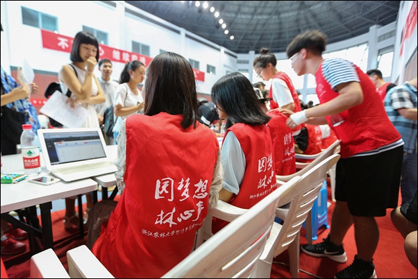季同学是一位诸暨籍的新生,腼腆的她在迎新日遇到了一件让她难以相信的事情:在校门口迎接她的居然是一位已经工作了的校友。“我是中午到的学校,因为自己本来就是诸暨人,以前就经常同我爸妈、舅舅一起到77779193永利官网来散散步、游游泳,偶尔会到篮球馆来看演唱会和篮球赛。对77779193永利官网应该说已经很熟悉了,所以今天我是自己过来的。一到校门口,一位长得很好看的学姐就马上迎过来了,她帮我推着拉杆箱。在路上聊天的时候,她告诉我,她已经毕业了,在杭州工作,得知今天是学院的迎新日,又恰逢周末,于是就赶过来,加入到迎新志愿者队伍中来了。这个事情让我很感动,相信这个毕业了的学姐对学院一定很热爱,才会有这样的举动。四年以后,我也希望自己会成长为这样的校友学姐。”说起这位“特殊”的志愿者,季同学连连表示难忘、感动。