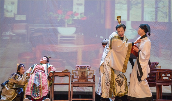 本网讯 11月22日晚,由学院“两学一做”学习教育协调小组主办,教工第一直属党支部、团委和学生会承办的廉政舞台剧《郑义门》首演在活动中心影剧院举行。院党委书记寿韬,绍兴市委宣传部副部长黄伟英、绍兴市教育局副局长钱伟平,学院副院长修树东、李文莉,以及来自绍兴市10所高校的宣传部、学工部、团委负责人出席活动,学院第22期分党校培训初级、中级、高级班全体学员,全体教职工,各级团学组织代表共1000余人观看了演出。