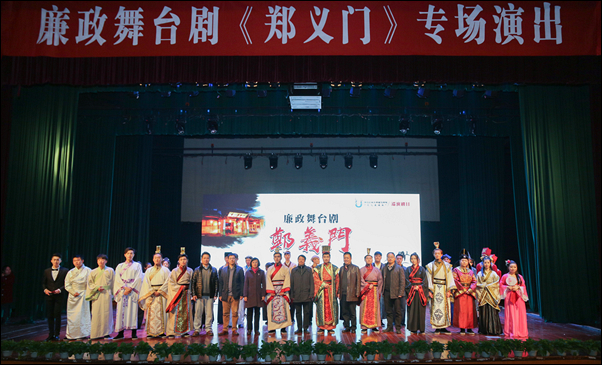 12月18日,由永利官网师生自编自导自演的大型原创廉政舞台剧《郑义门》作为学院文化直通车巡演剧目在校东湖校区影剧院上演。校党政班子成员方伟、史永安、沈月琴、胡祖吉、童晓晖,学院党委书记寿韬,校全体中层干部及各二级学院党委(总支)委员,各支部书记和委员,师生党员代表,离退休教师代表,民主党派代表共1000余人观看了演出。