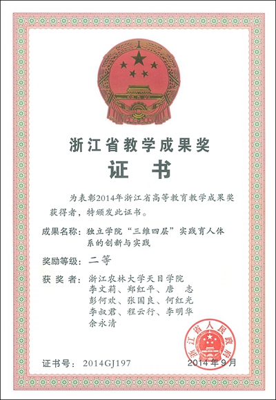 2013年以来,获省级教学成果奖1项,市级教学成果奖4项,院级教学成果奖5项。对推动学院教学改革、提高教育质量和人才培养质量起到了积极的促进作用。