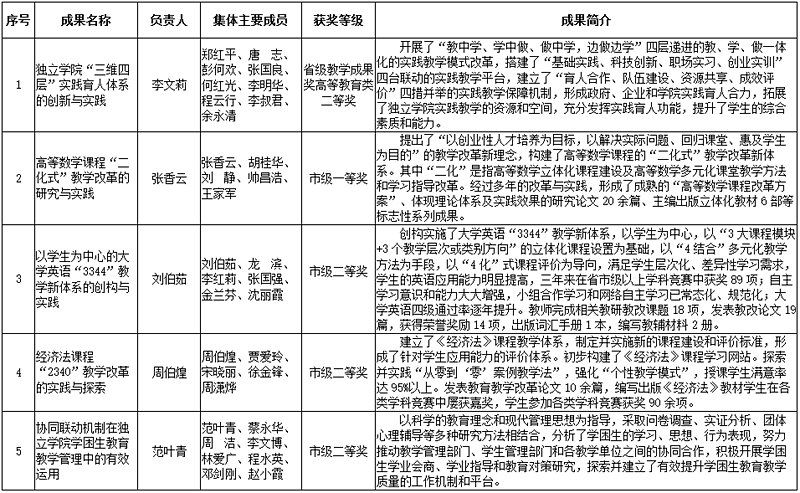 【编者按】自2012年第一次教学、科研工作大会召开以来,学院围绕大会确定的目标和任务,不断深化教育教学改革,创新人才培养模式,积极探索和培养应用型创业人才,大力推进学科专业一体化建设,教学科研工作取得了明显成效,为学院率先通过独立学院规范设置省级验收作出了应有的贡献。今年,是学院“十三五”发展规划实施的关键之年,学院将召开第二次教学科研工作大会,全面贯彻落实“十三五”教学科研工作目标和任务。在大会召开之际,学院网站开辟【教学科研成就巡礼】专栏,集中展示第一次教学、科研工作大会以来,学院在教学、科研、学科专业建设、人才培养、师资队伍建设等方面取得的主要成就,凝聚正能量,激发广大师生员工投身教学科研工作的积极性、主动性和创造性,努力开创教学科研工作新局面,为实现省内一流、国内知名的创业型独立学院而努力奋斗!