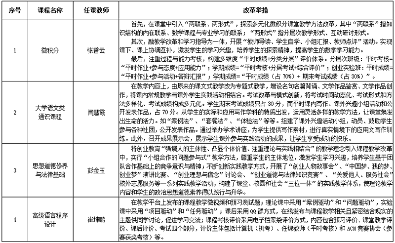 2013年以来,获市级以上教育教学改革项目立项70项,其中省级立项21项。对慕课、翻转课堂的建设积累了一些经验,《微积分》《大学英语》《经济法》《思修道德修养与法律基础》等33门课程进行课堂教学改革取得明显效果,学生的学习积极性、实践能力、创新思维得到了很大提高,课堂教学改革取得明显实效。