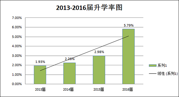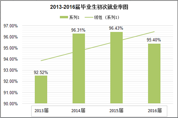 学院高度重视人才培养工作,始终秉承“以生为本,质量为先”的就业工作理念,逐步形成“学院统一领导、部门统筹协调、教师积极参与、学生踊跃参加”的就业工作格局,完善上下联动、协同一体、精简高效的运行机制,实现招生—培养—就业良性互动。2013年以来,学院就业率保持优良势头,升学率、创业率、高质量就业率呈稳步上升趋势。