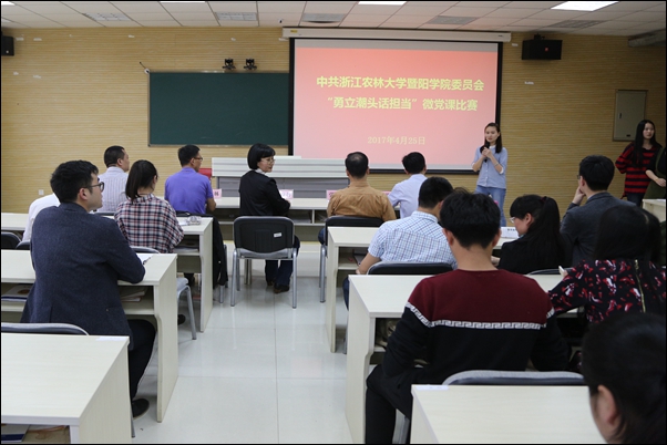4月25日下午,为全面推动“两学一做”学习教育常态化制度化,引导学院广大党员干部深入学习贯彻全国、全省高校思想政治工作会议精神,由学院党委主办的微型党课比赛在智能录播室举行。学院各党总支、直支书记,党支部书记,分党校第23期全体中级班学员参加了此次活动。
